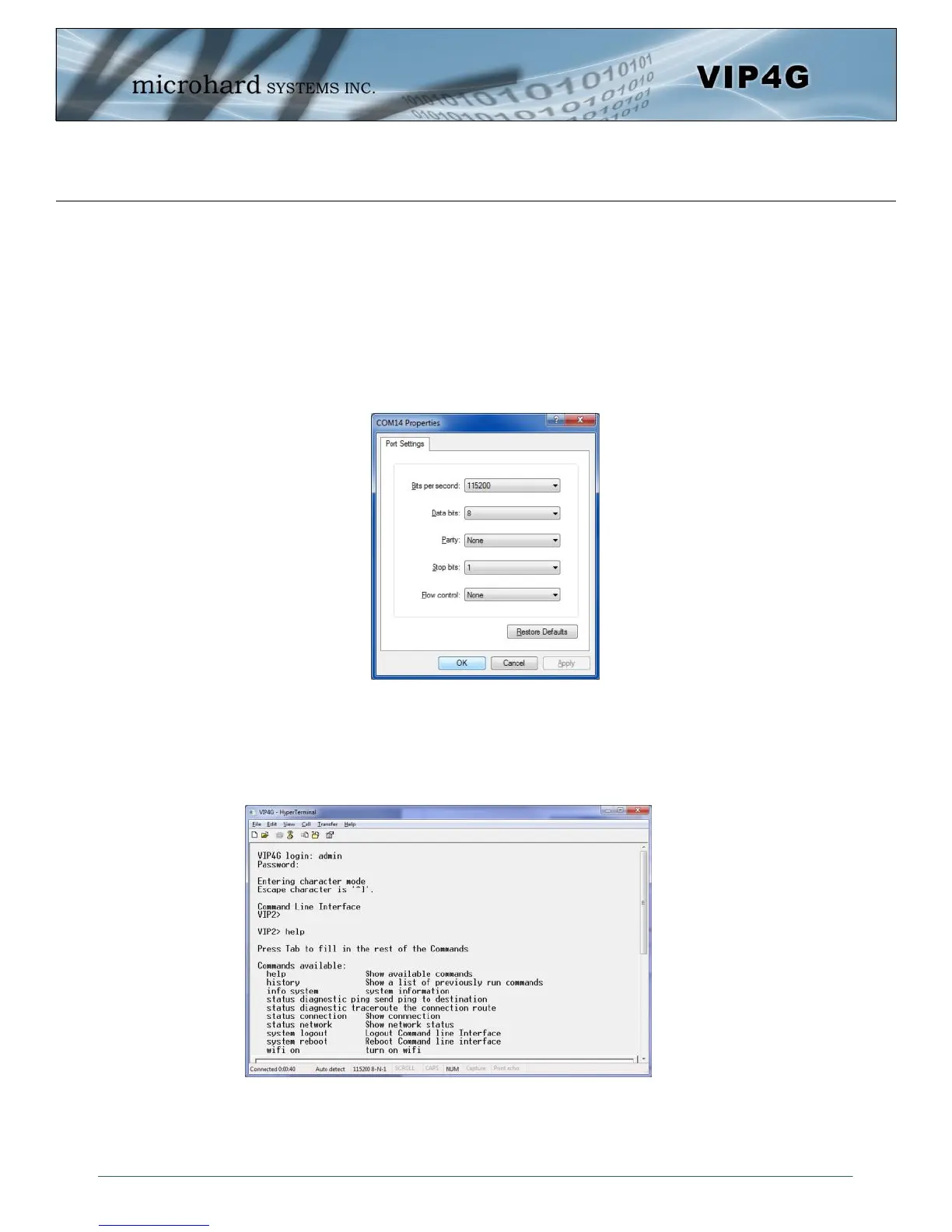 ProComm, Putty etc) can then be used to communicate with the VIP4G.