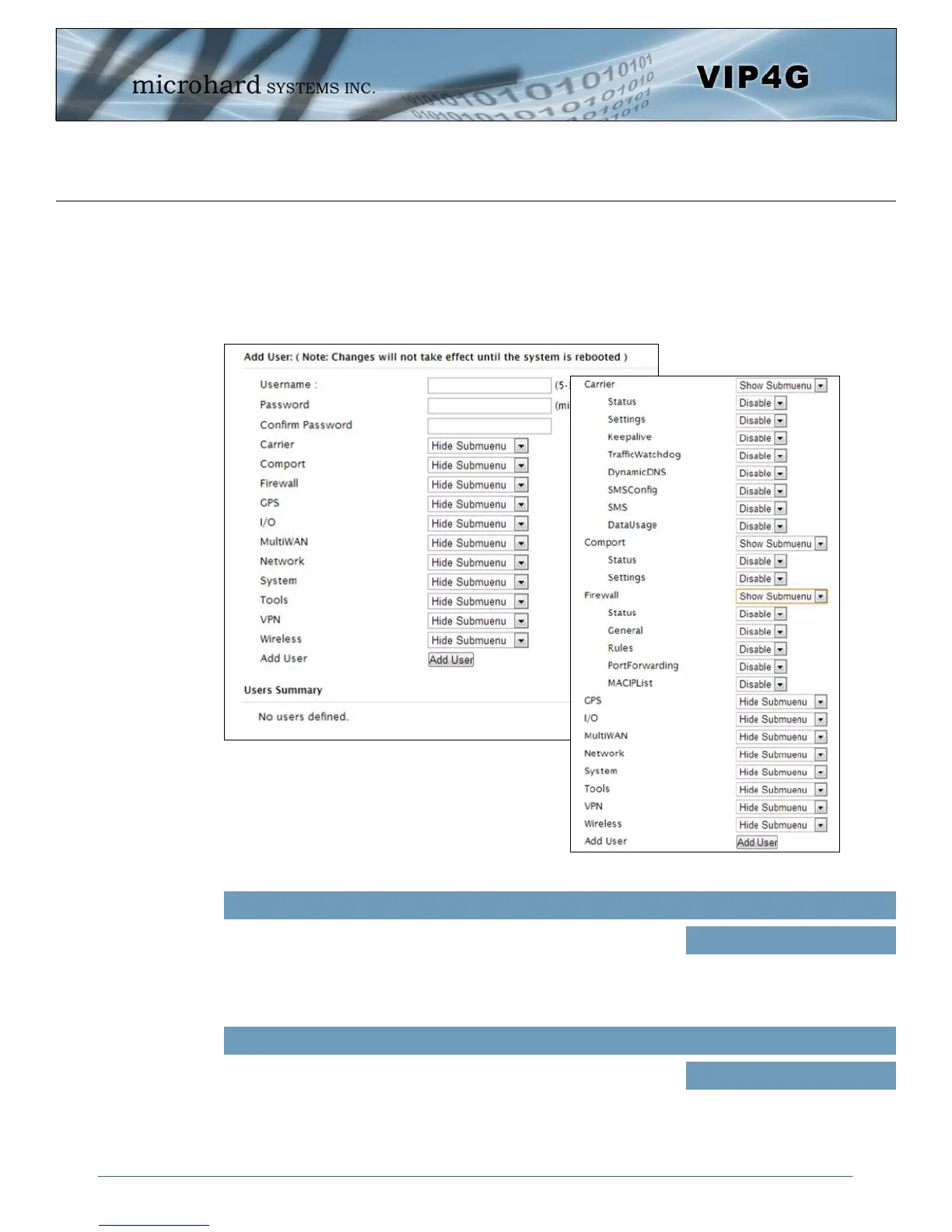 Different users can be set up with customized access to the WebUI. Each menu or tab of the WebUI can