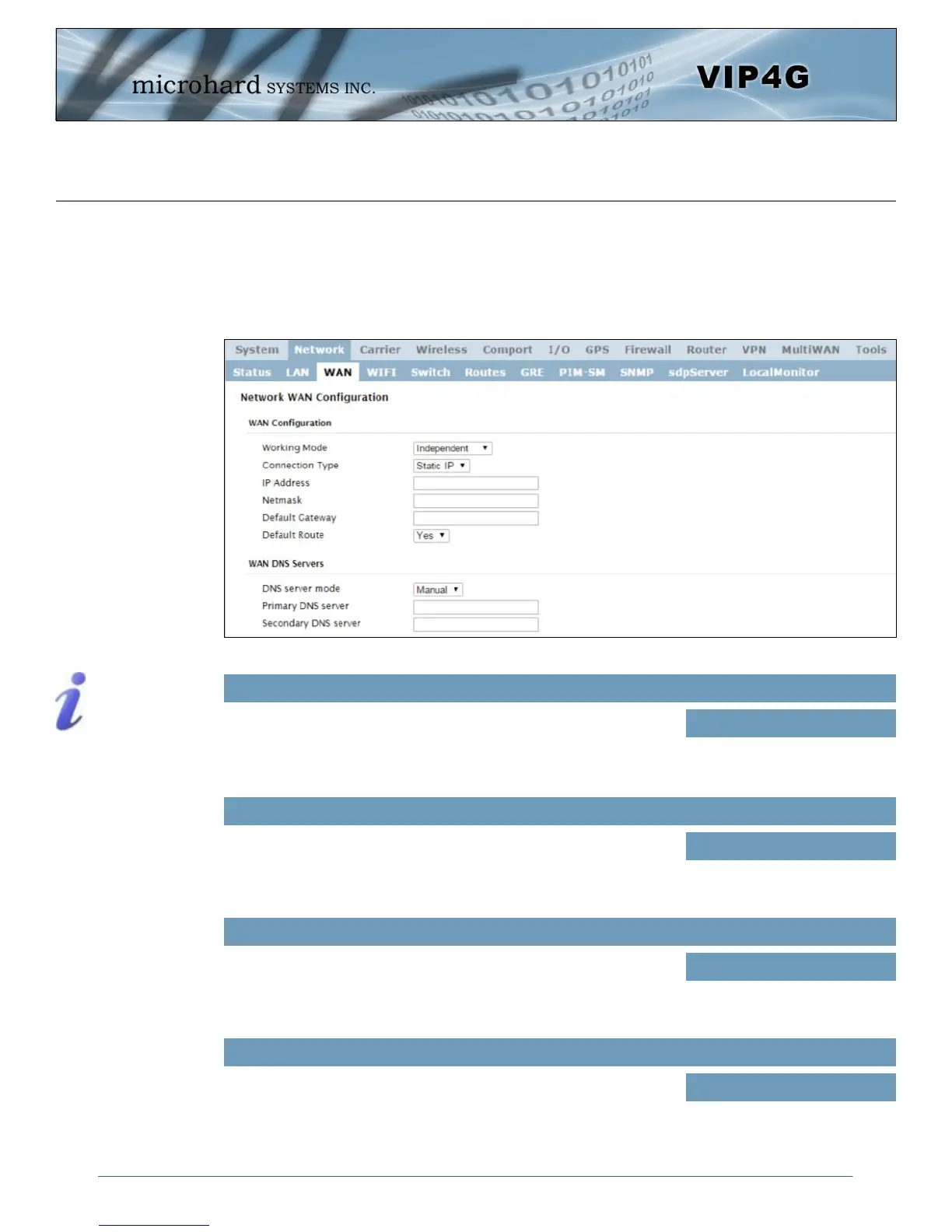 The WAN configuration refers to the wired WAN connection on the VIP4G. The WAN port can be used to