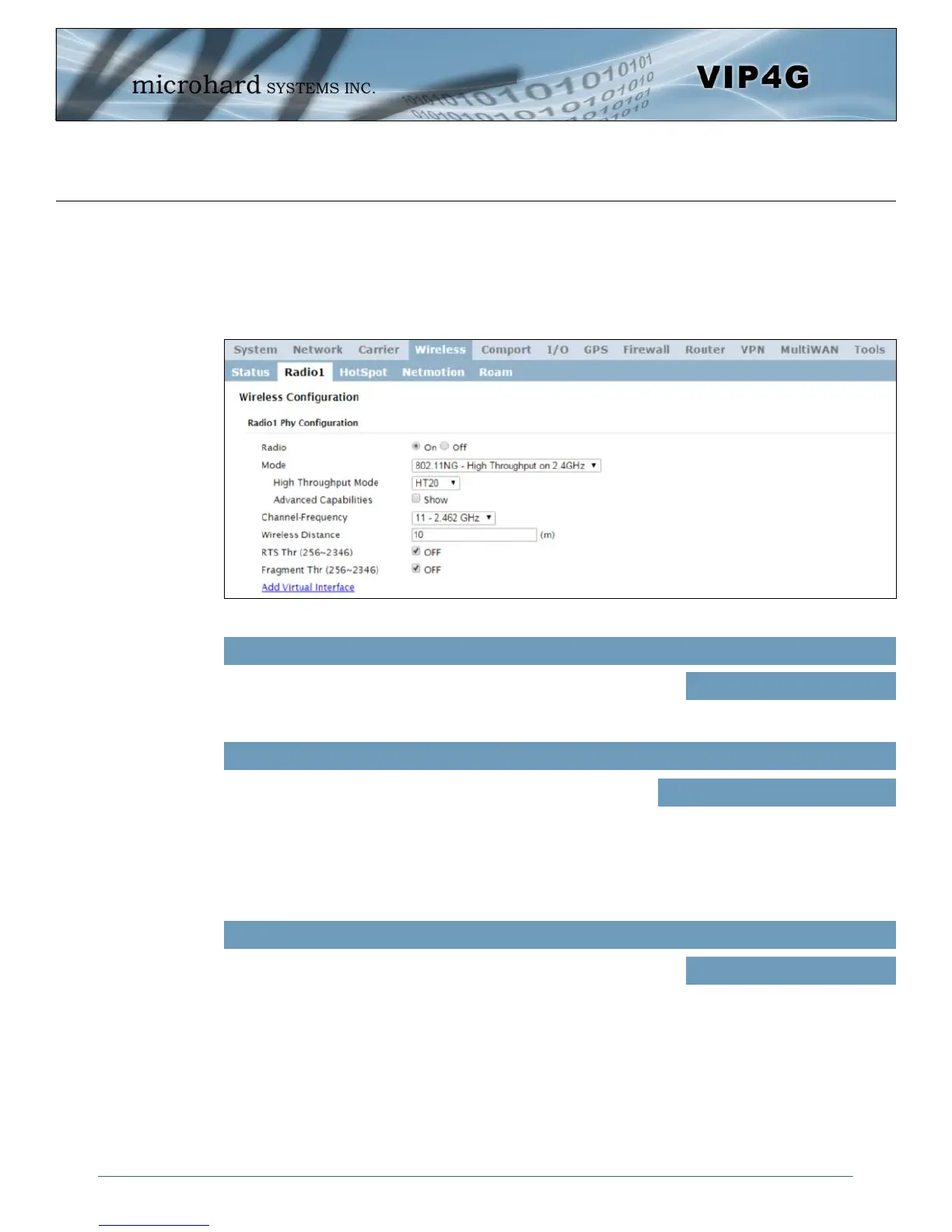 The top section of the Wireless Configuration allows for the configuration of the physical radio module. You