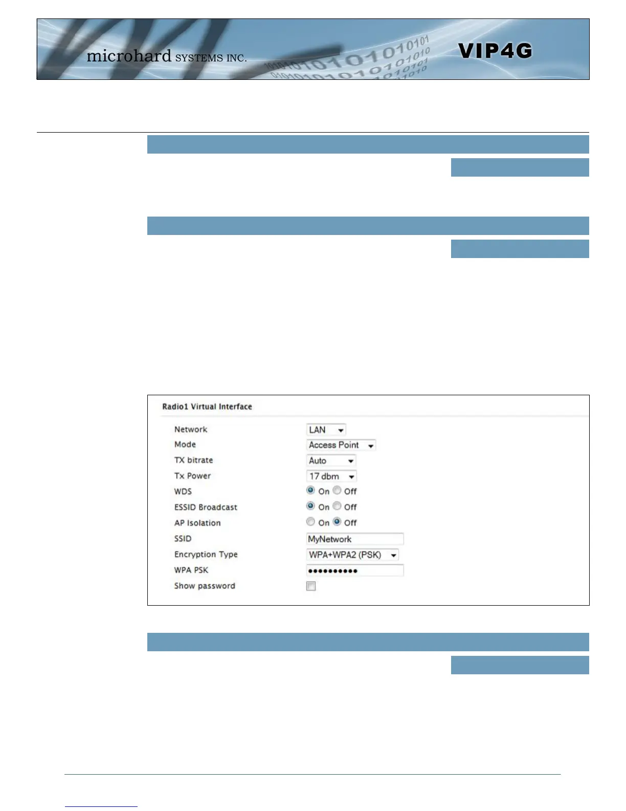 the Wireless Interface, the TX power, Wireless Network information, and Wireless Encryption. The VIP4G