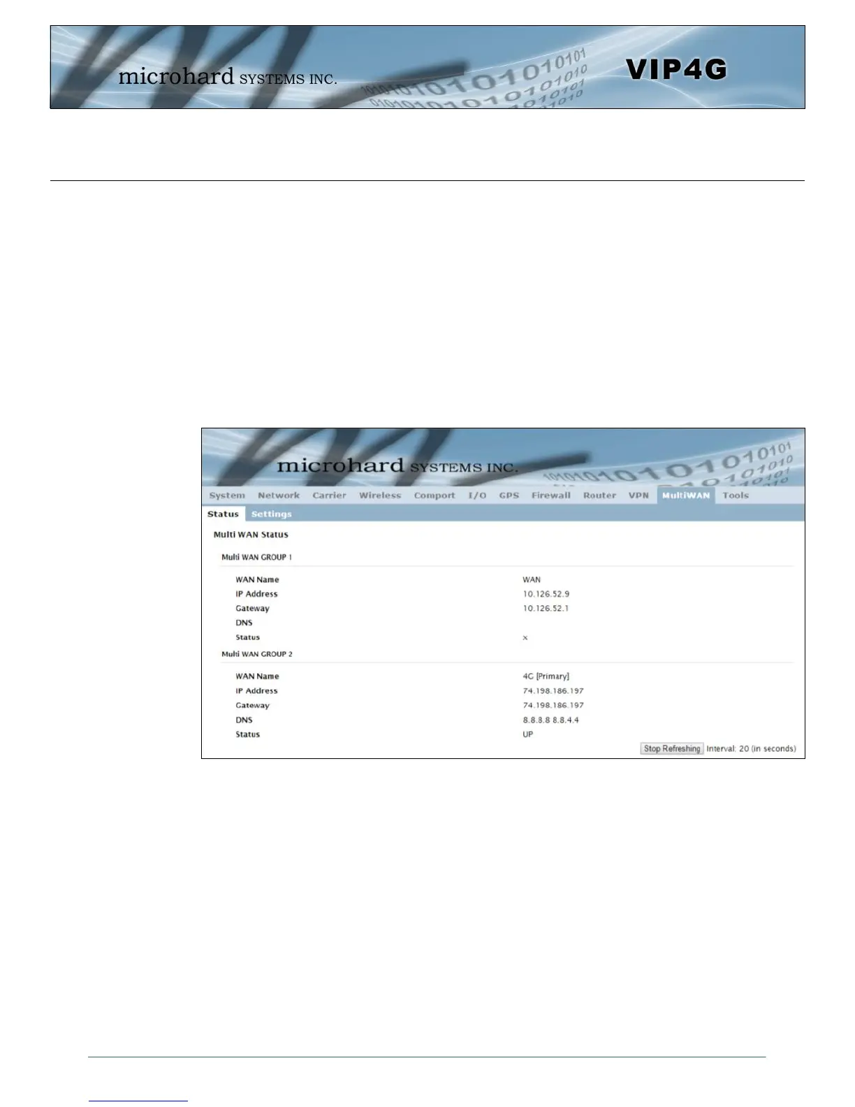 VIP4G and the Cellular WAN connection to the wireless carrier. The MultiWAN section allows a user to