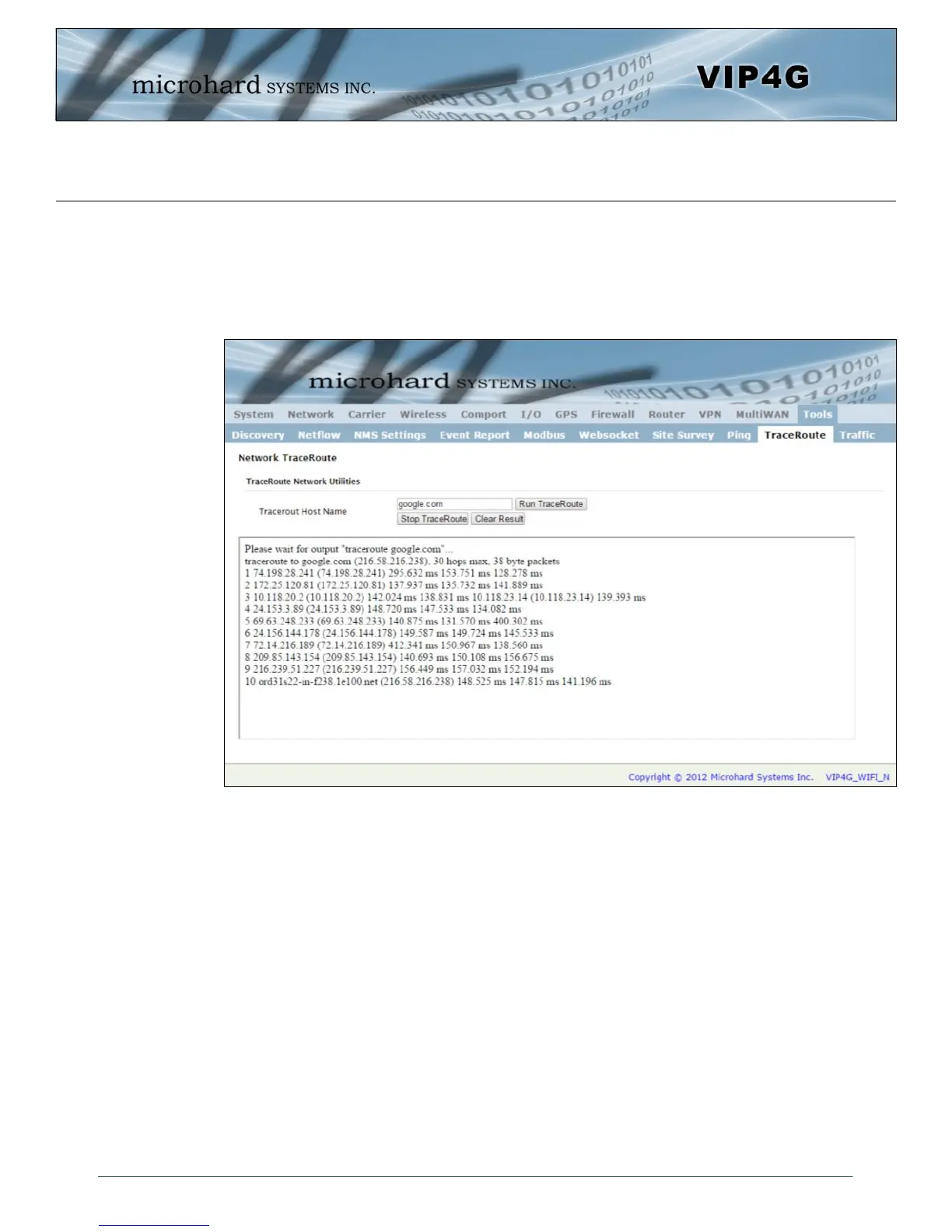 Microhard Systems VIP4Gb - Network TraceRoute