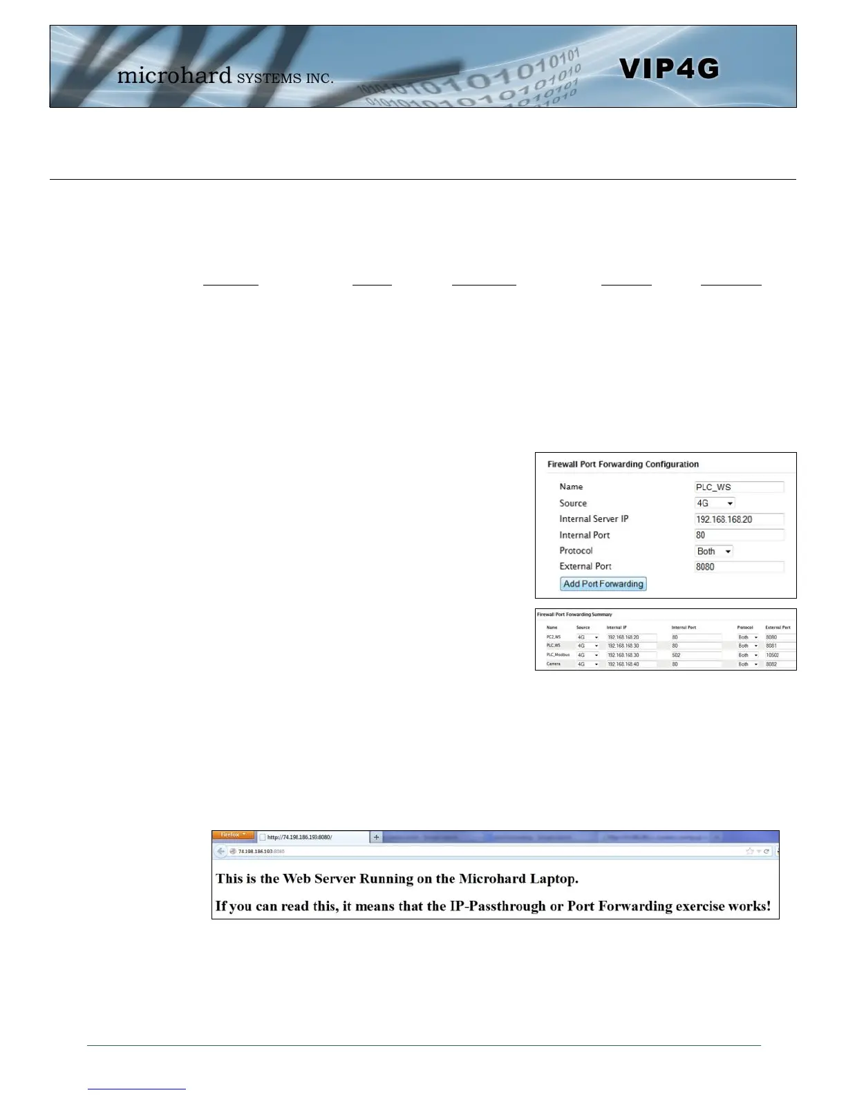 addresses, and the different external ports mapped by the VIP4G (80, 8080, 8081, 8082), will send the data to the
