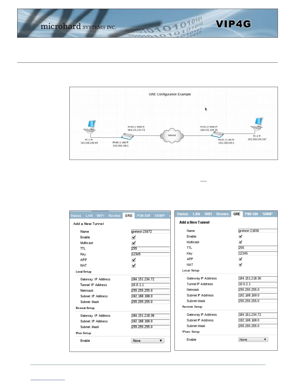 The following pages outline the different GRE configurations available for the VIP4G. This may be useful in