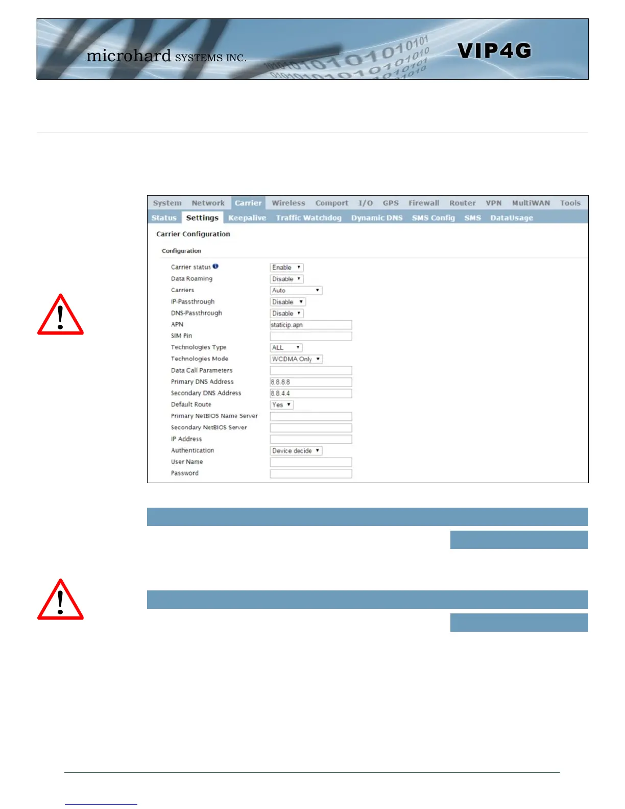 The parameters within the Carrier Configuration menu must be input properly; they are the most basic
