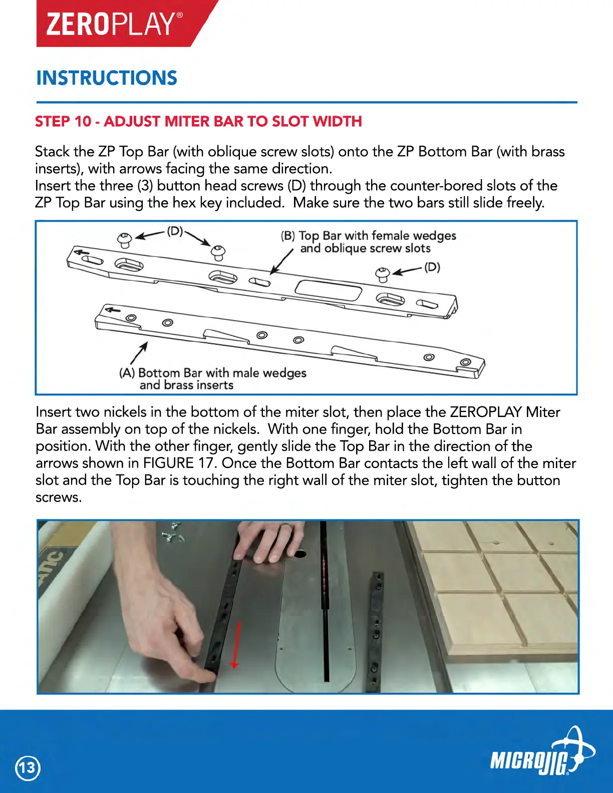 Insert two nickels in the bottom of the miter slot, then place the ZEROPLAY Miter