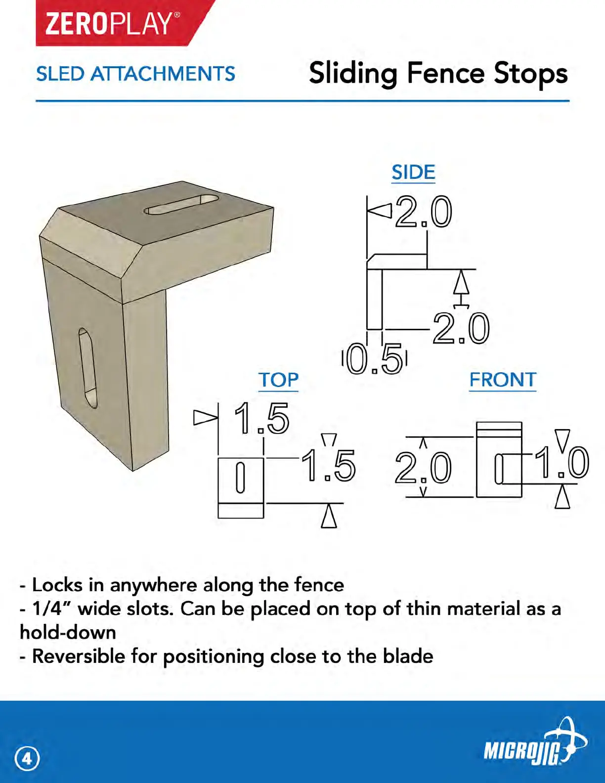 microjig ZEROPLAY - Sliding Fence Stops