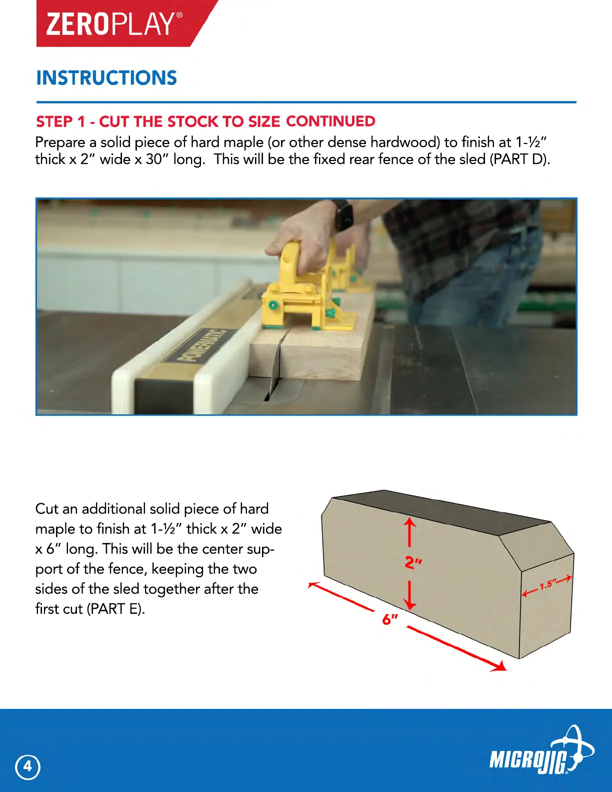 thick x 2” wide x 30” long. This will be the fixed rear fence of the sled (PART D).