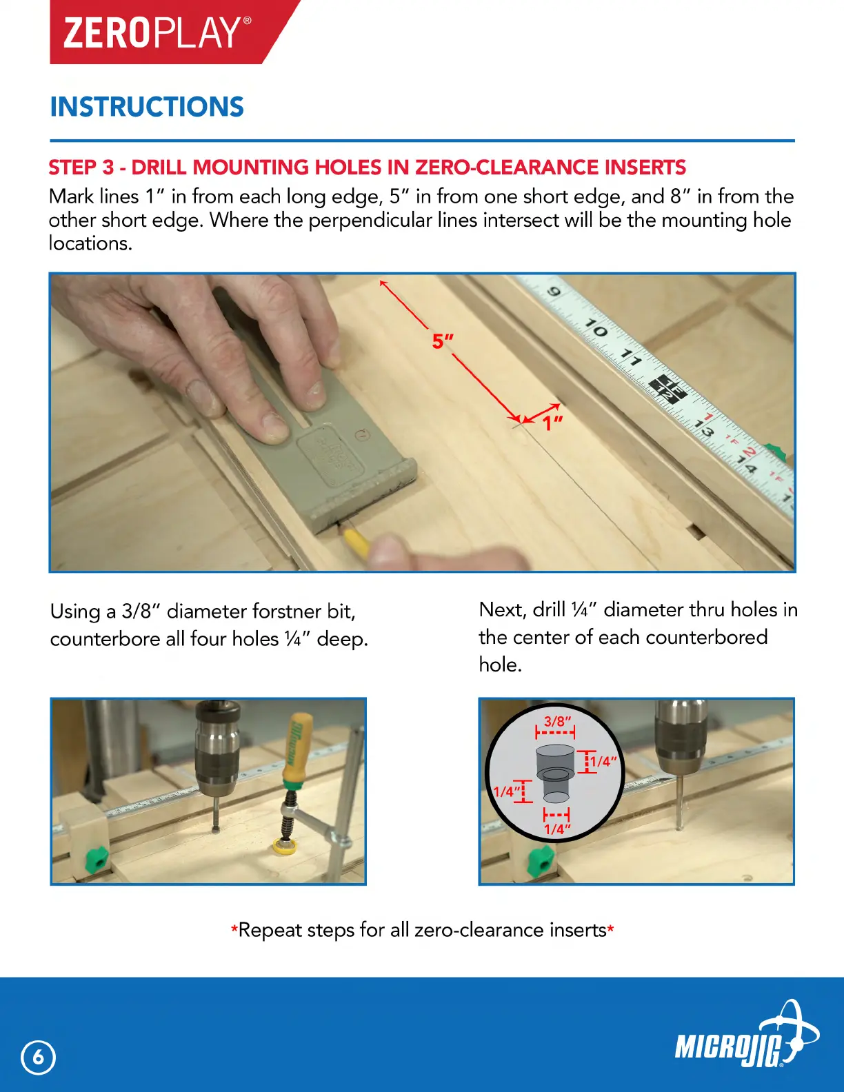 microjig ZEROPLAY - Step 3 - Drill Mounting Holes in Inserts