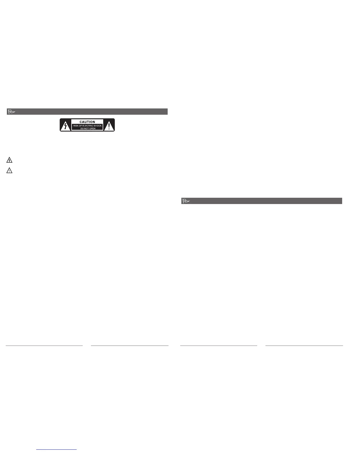 To reduce the risk of electric shock, do not dismantle the product and do not expose the apparatus to rain or moisture. No