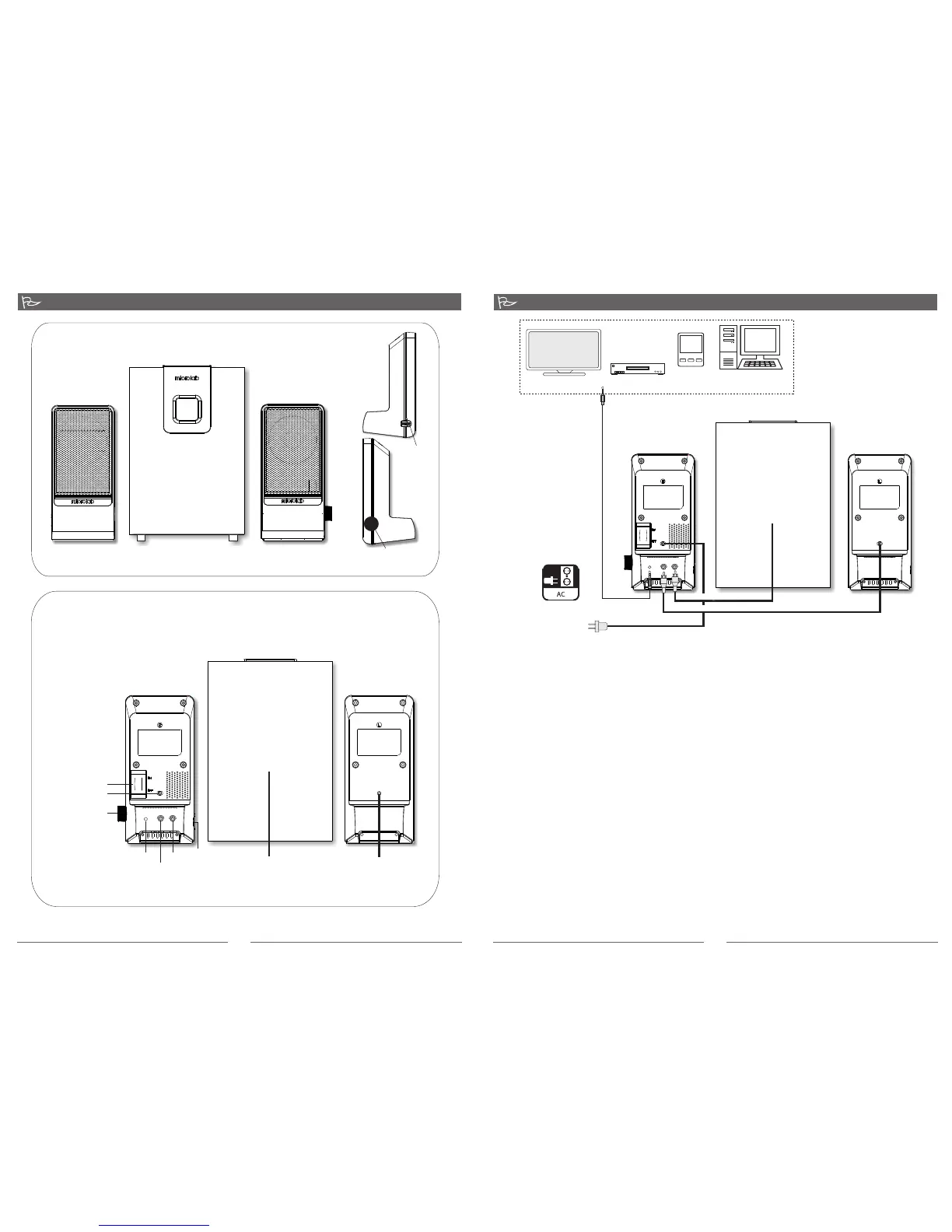 satellite. Next, connect the woofer cabinet’s speaker cable to the audio output (Woofer).