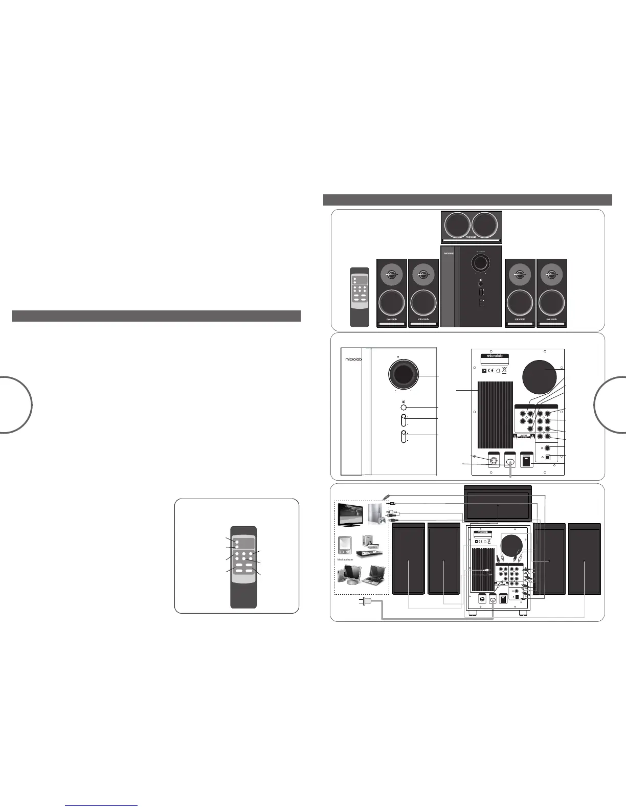 Connects to stereo and 5.1 audio source such as DVD player and gaming devices