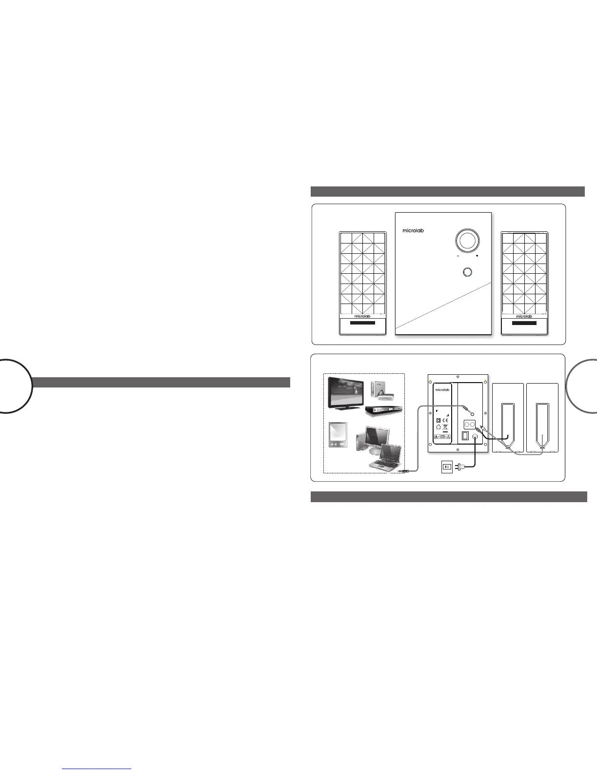 1. Connect the left and right satellites to the subwoofer rear panel to its respective RCA jacks.