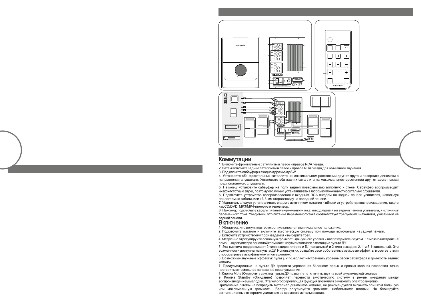 • Акустическая система 5.1 с сабвуфером и сателлитами объемного звучания