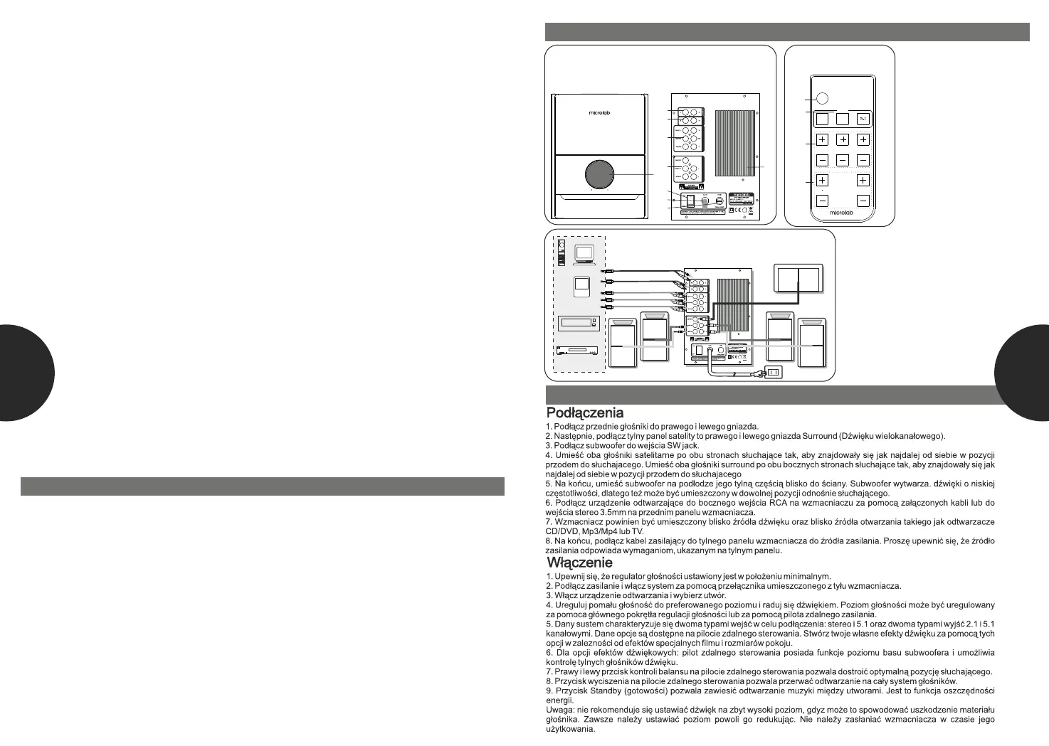dzwiekowego. Jesli to zrobisz, moze nastapic uszkodzenie glosnika gdy nagle zabrzmi fragment o
