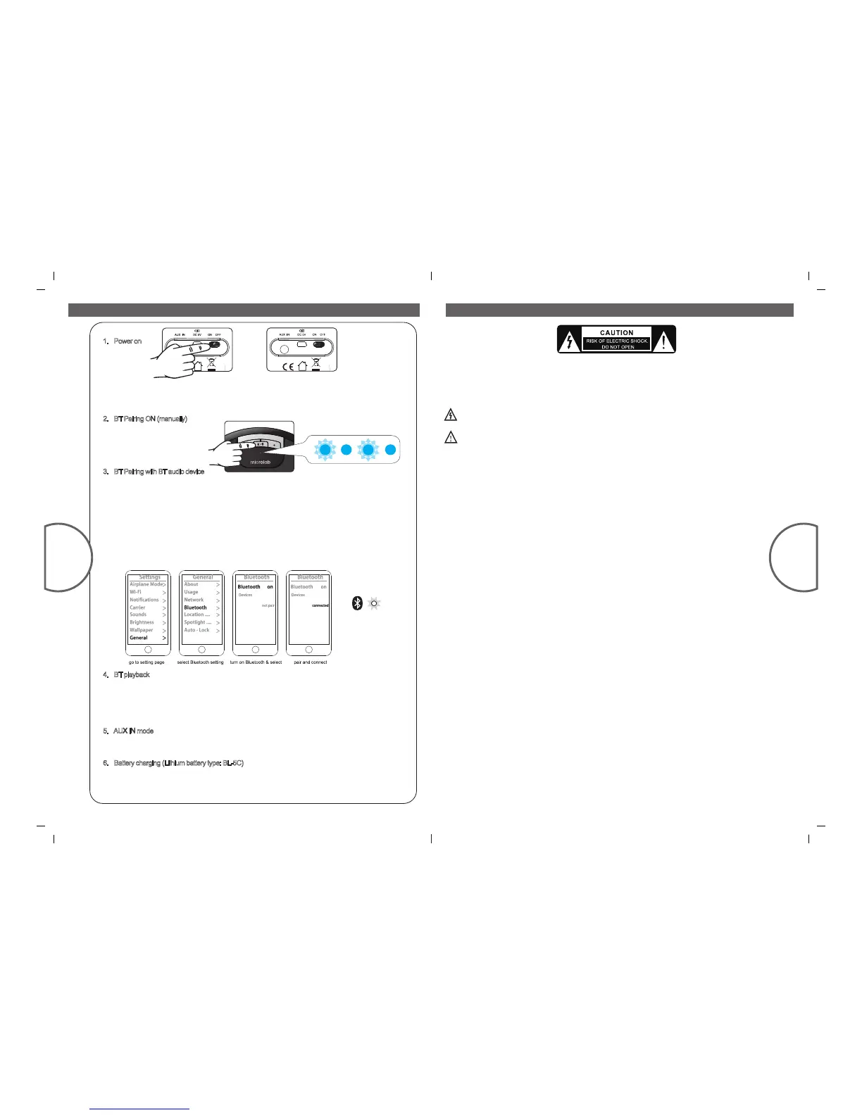 Pairing with Bluetooth music devices. Once paired, Bluetooth LED will blink for 2