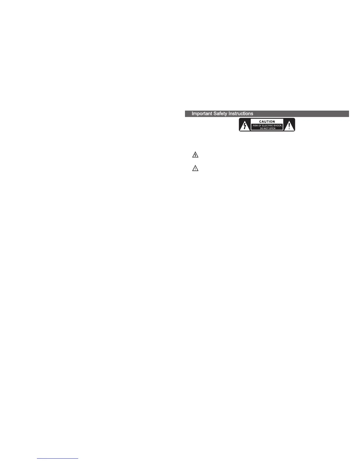To reduce the risk of electric shock, do not dismantle the product and do not expose the apparatus to rain or moisture. No