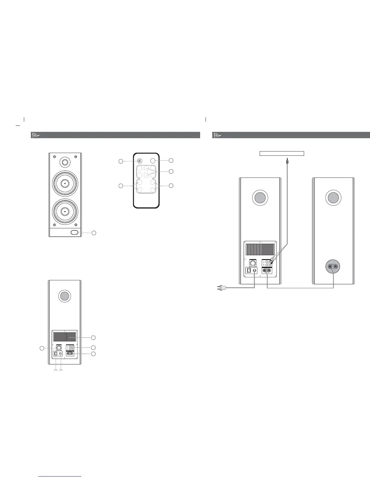 plug) to the audio input sockets of the main speaker, the 3.5mm stereo plug to the audio outpu