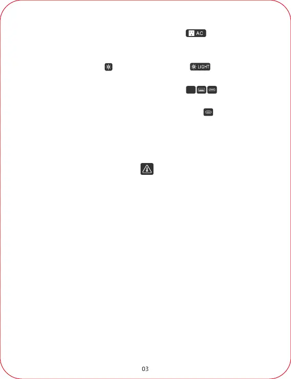 2. When turning on the AC output, the symbol of lights up. When a