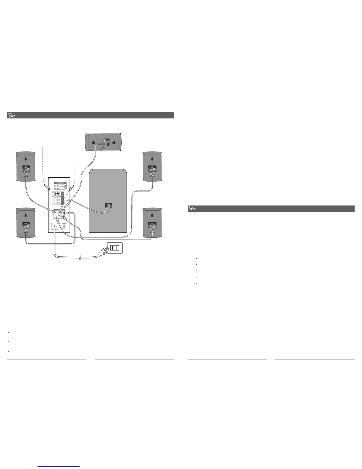 The satellite speakers and the woofer should be positioned firmly to avoid resonance.