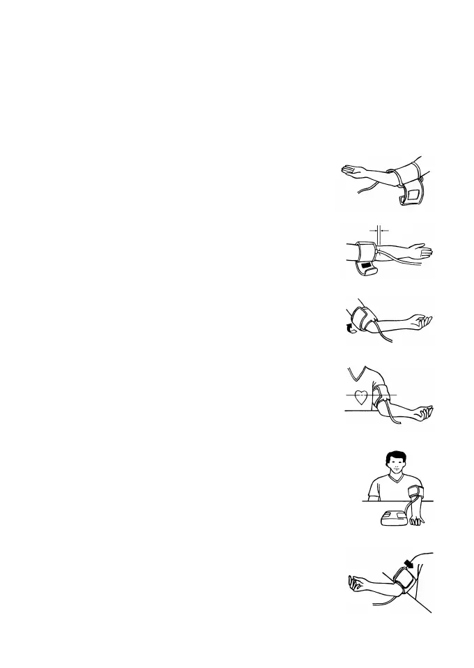 б) Расположите манжету на руке таким образом, чтобы