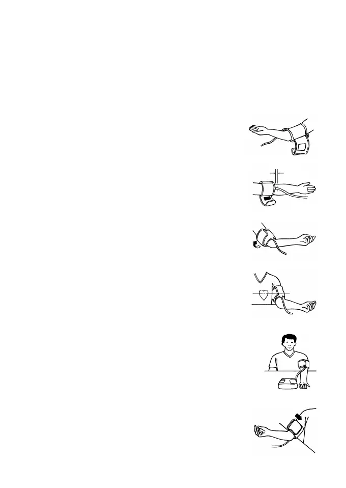 b) Lay the cuff on the arm as illustrated. Make certain