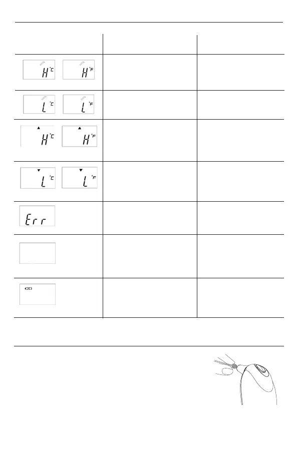 that no liquid enters the interior of the thermometer. Never use abrasive