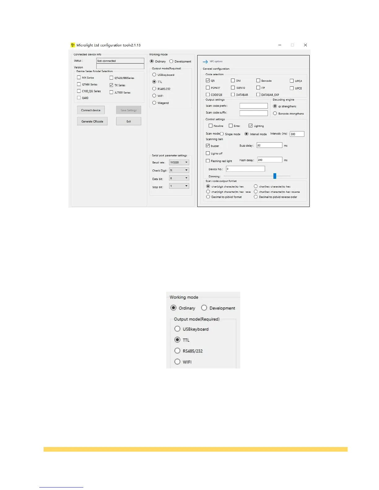 (1)Working Mode: Can be configured as normal mode or development mode, under normal mode,