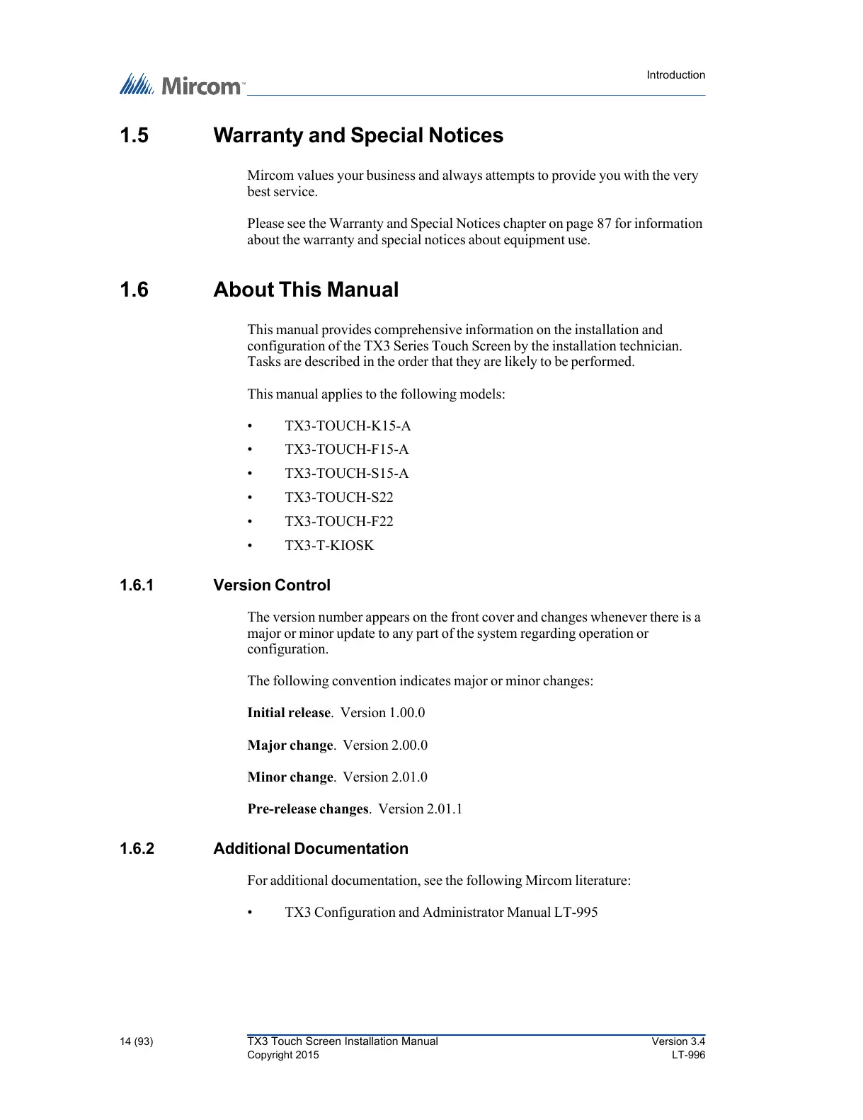 14 (93) TX3 Touch Screen Installation Manual Version 3.4