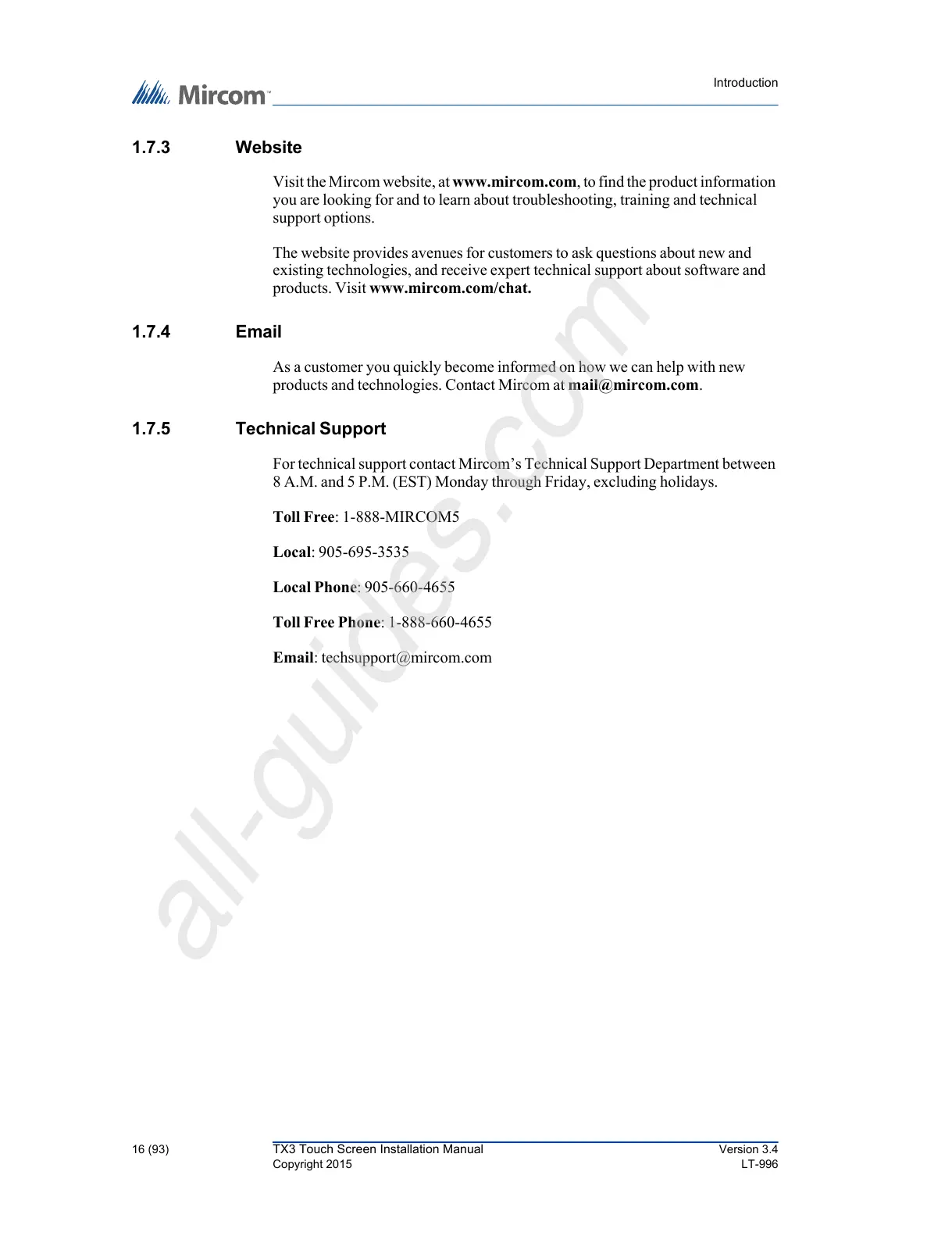 16 (93) TX3 Touch Screen Installation Manual Version 3.4