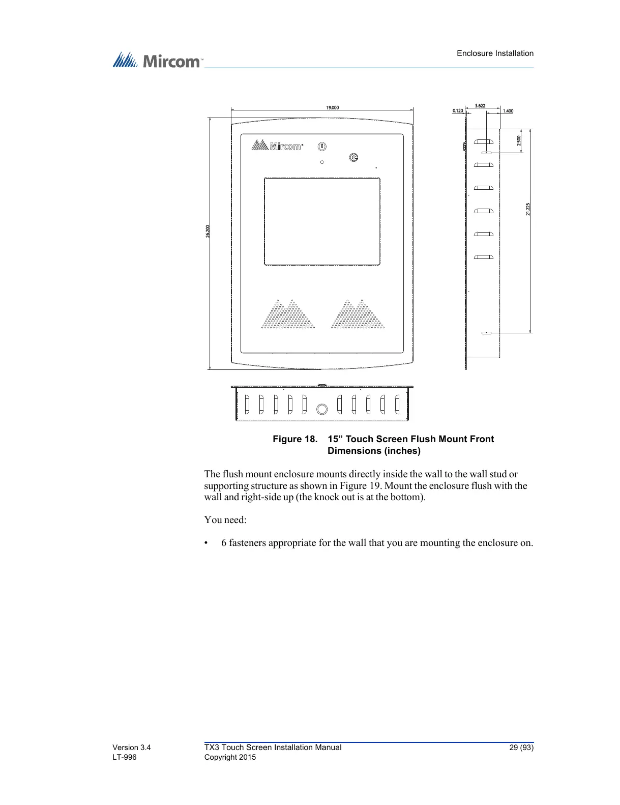 Figure 18. 15” Touch Screen Flush Mount Front