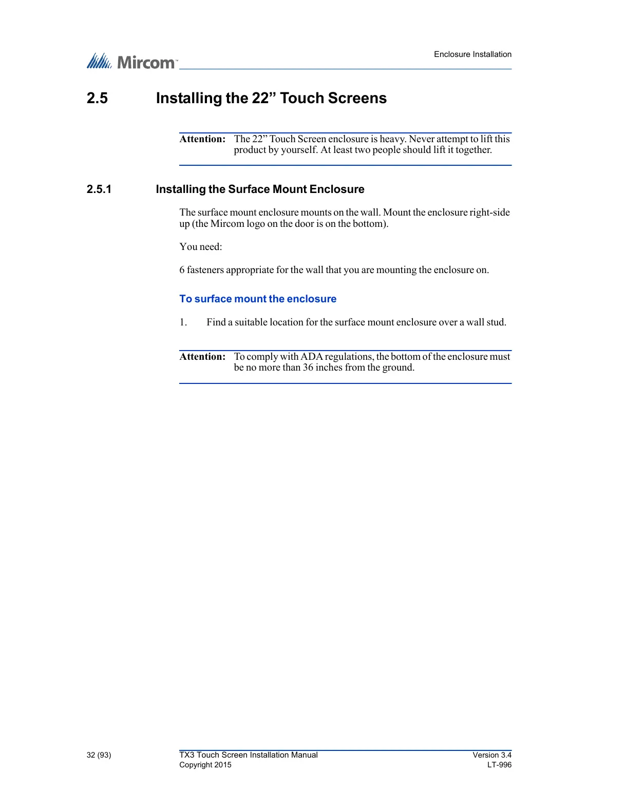 Attention: To comply with ADA regulations, the bottom of the enclosure must