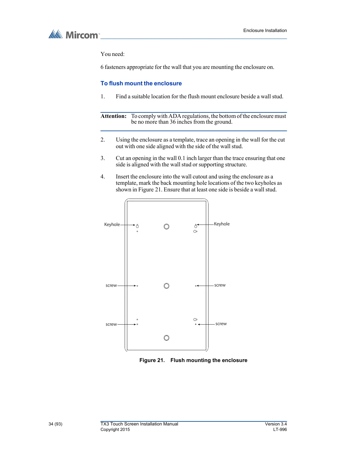 Figure 21. Flush mounting the enclosure