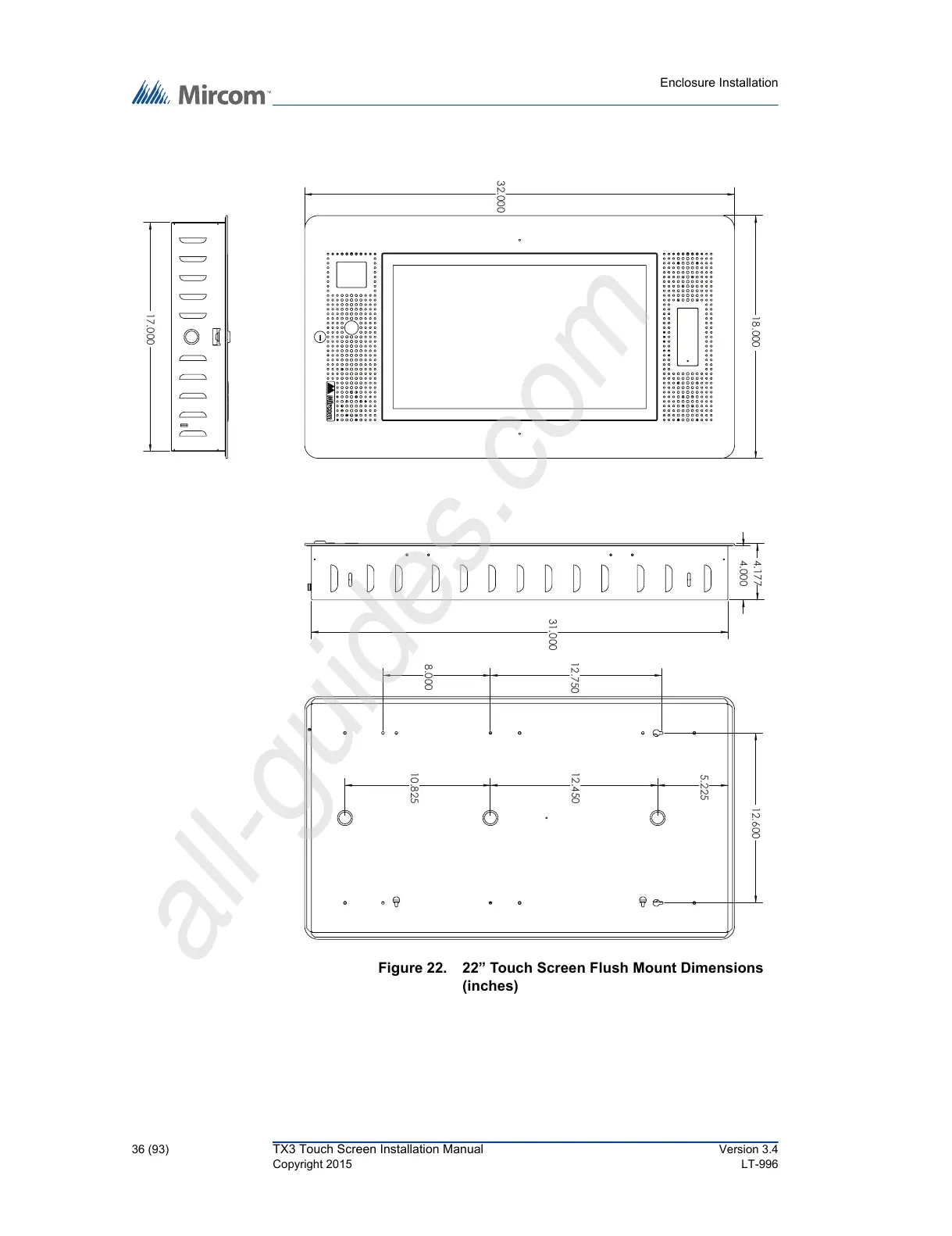 Microm TX3 Series - Figure 22 22 Touch Screen Flush Mount Dimensions (Inches)