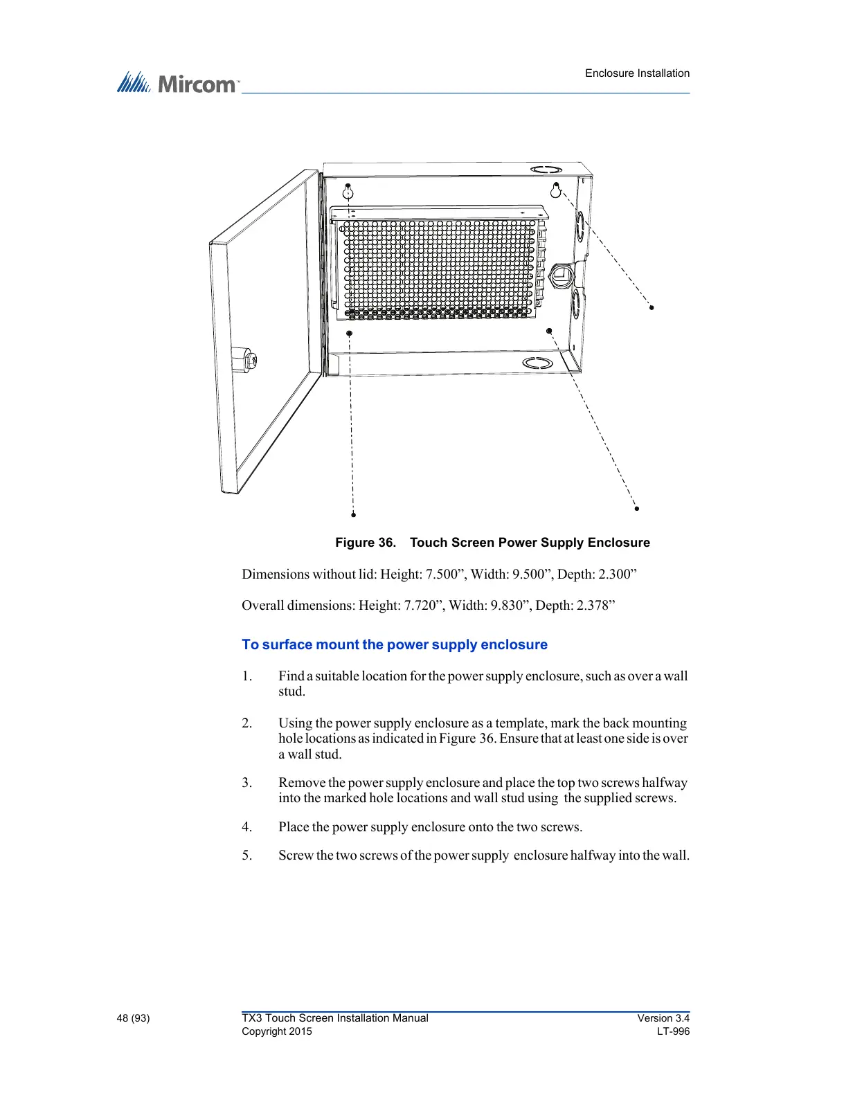 48 (93) TX3 Touch Screen Installation Manual Version 3.4