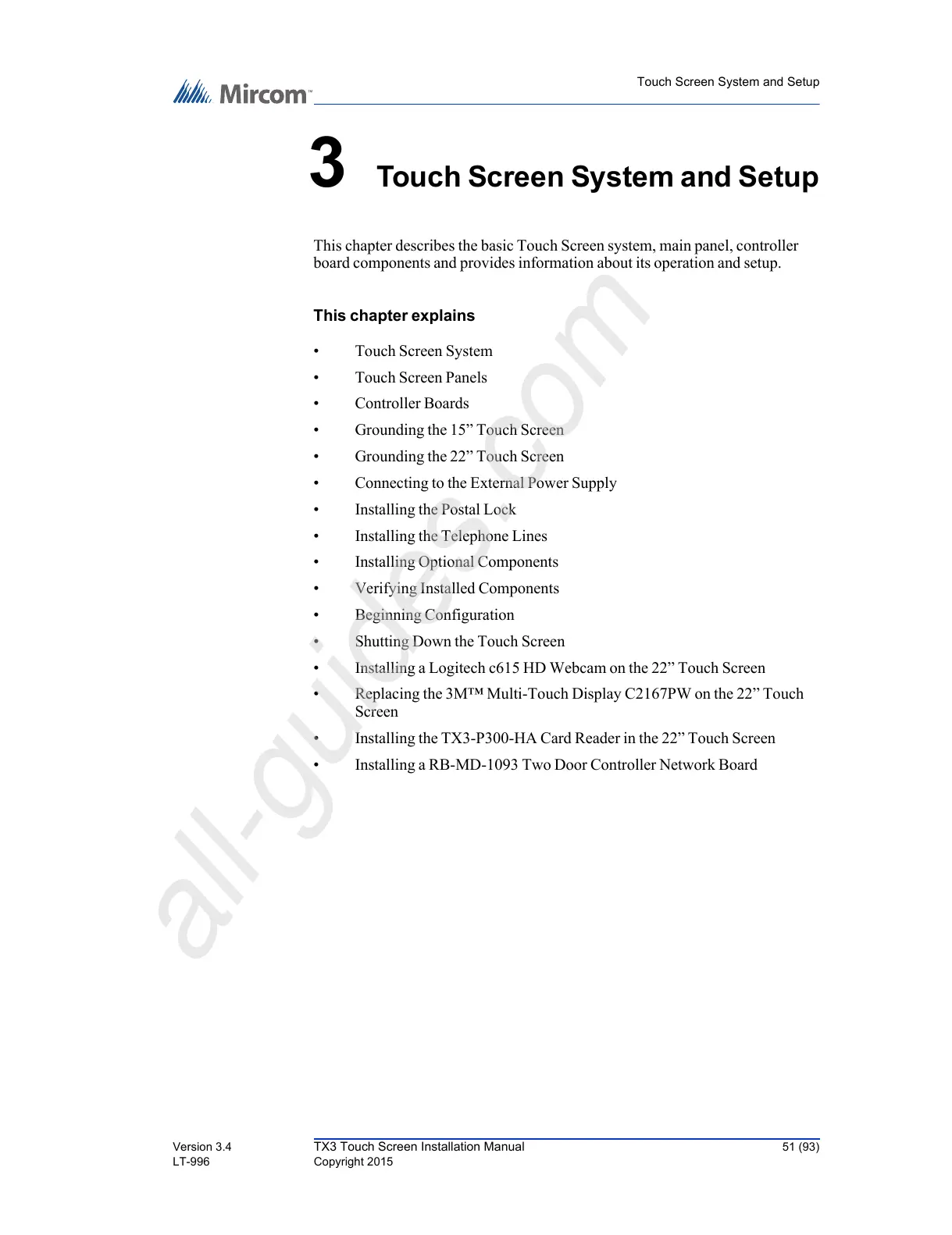 Version 3.4 TX3 Touch Screen Installation Manual 51 (93)