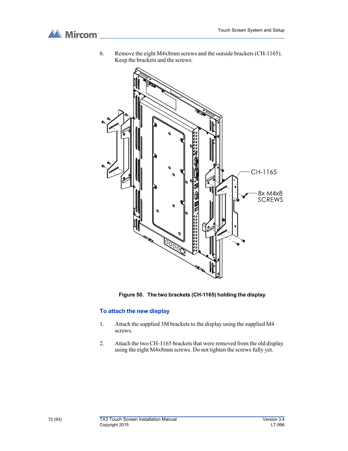 2. Attach the two CH-1165 brackets that were removed from the old display