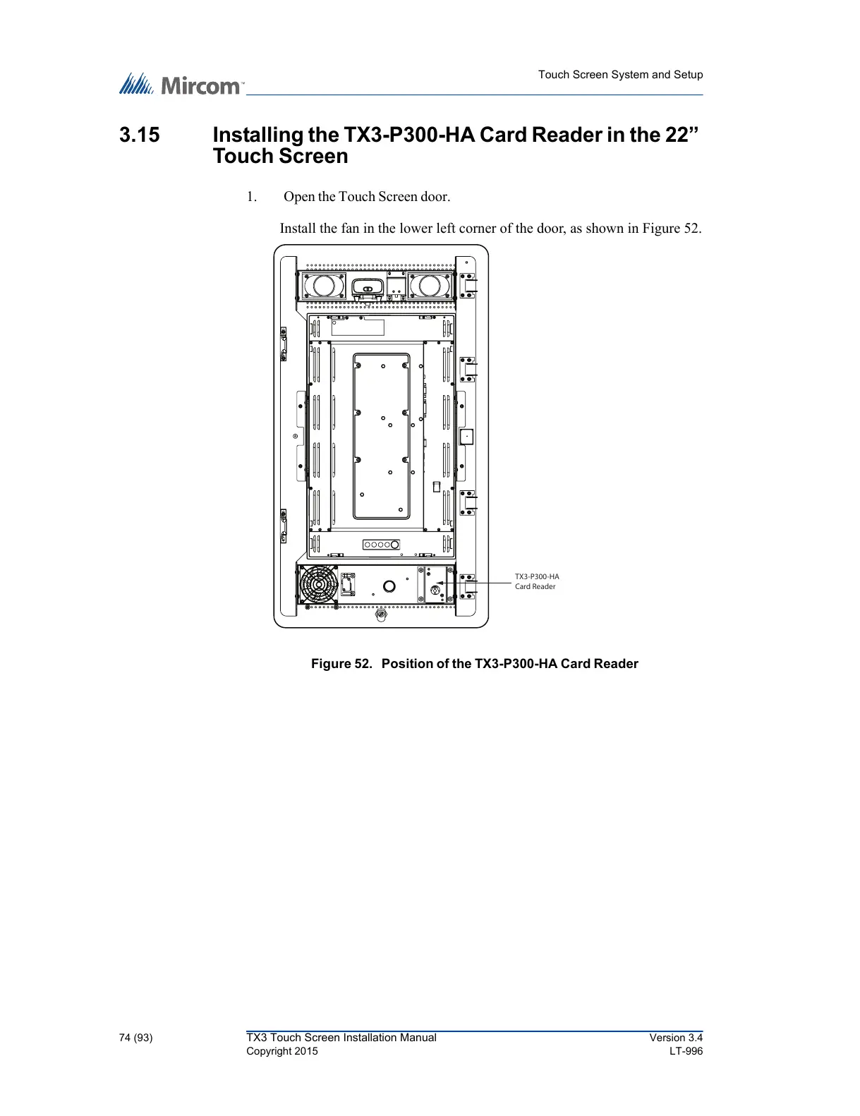3.15 Installing the TX3-P300-HA Card Reader in the 22”