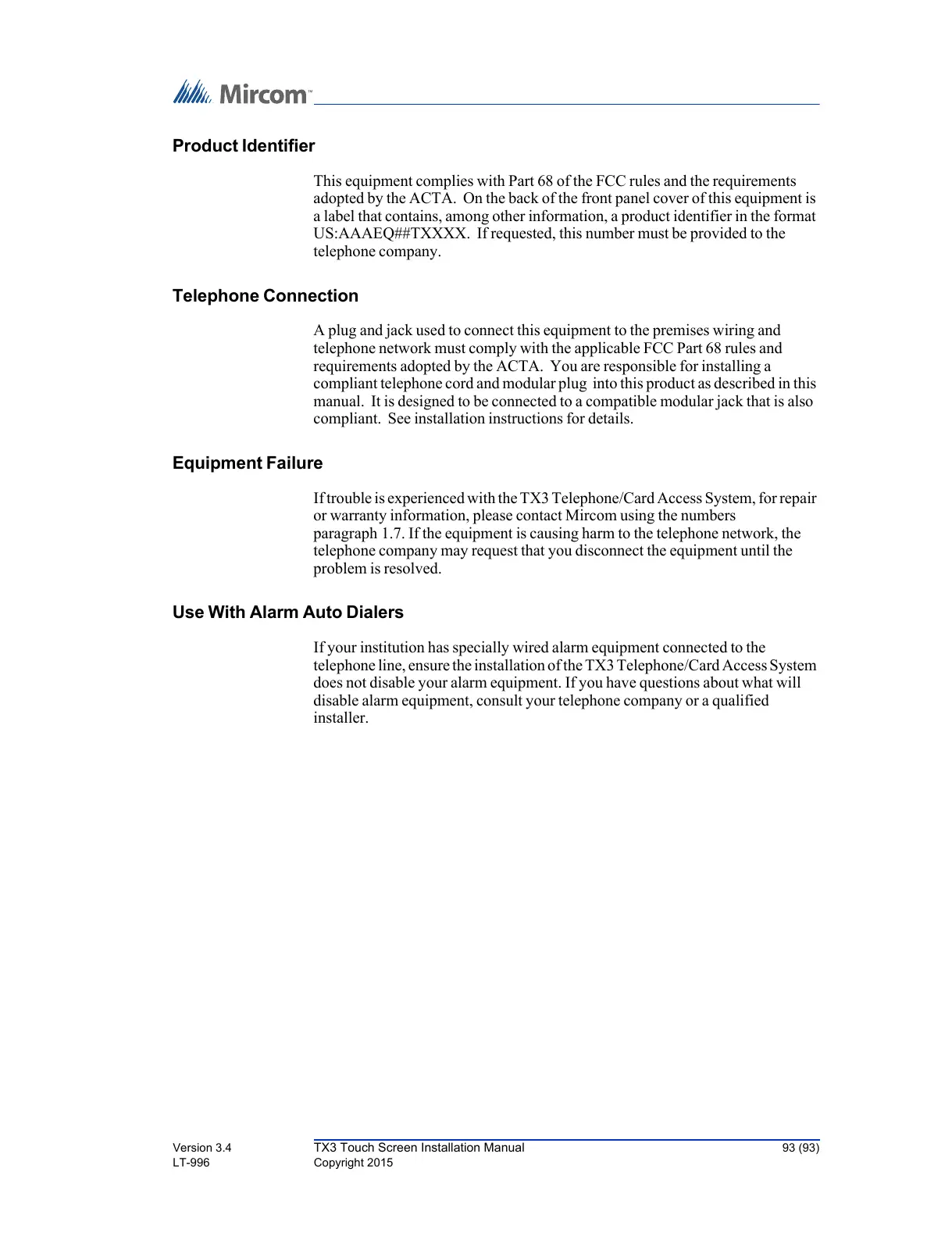 Version 3.4 TX3 Touch Screen Installation Manual 93 (93)