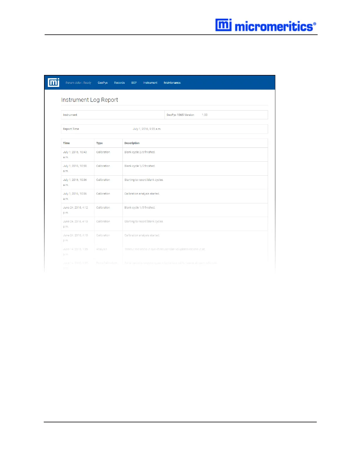 Micromeritics GEOPYC 1365 - Instrument Log Report