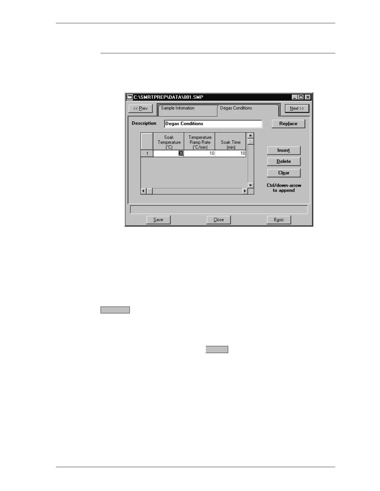 Conditions Table Enter up to five stages of the following degas con-