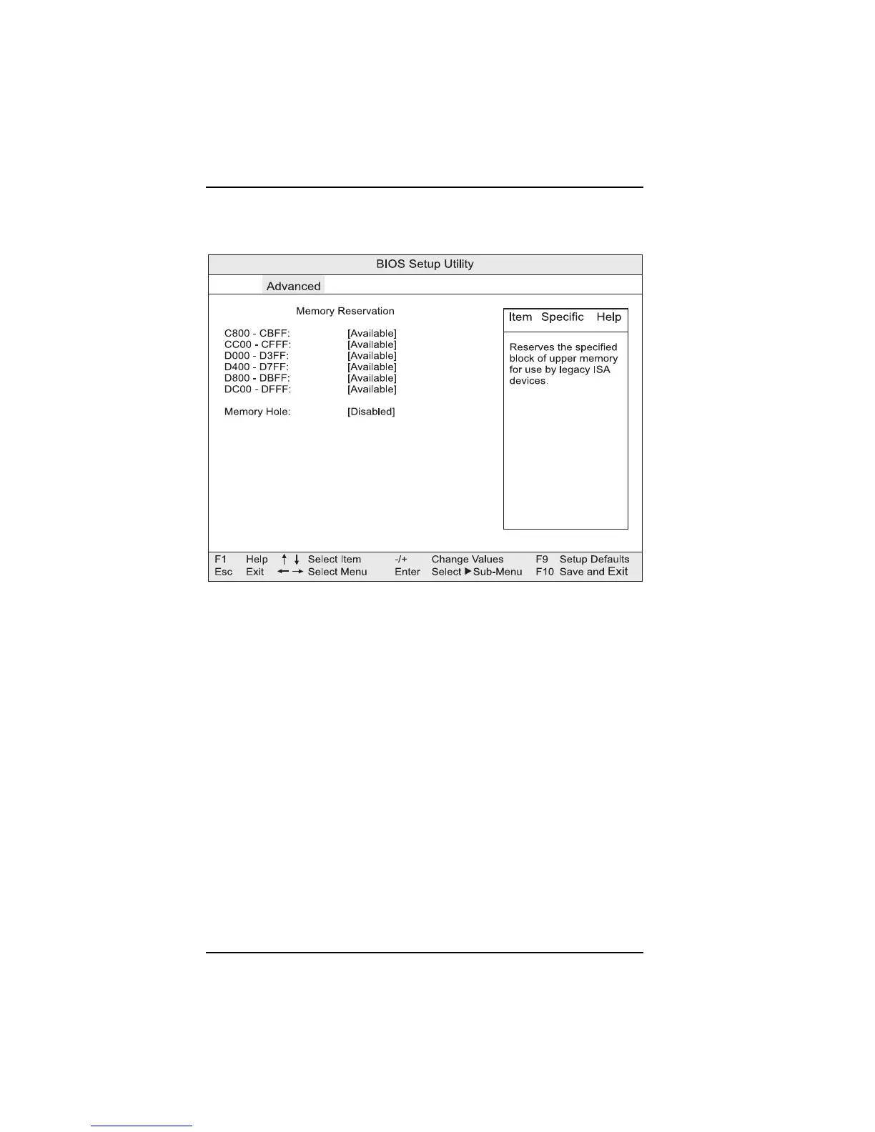 Setting “Memory hole” to Enabled frees address space in RAM for legacy ISA