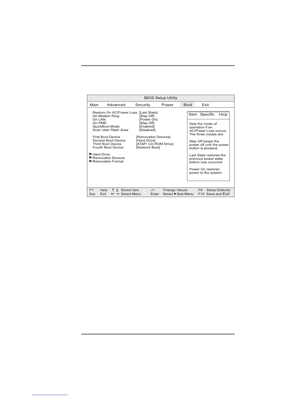 failure. “Stay Off” keeps power off until the power button is pushed. “Last