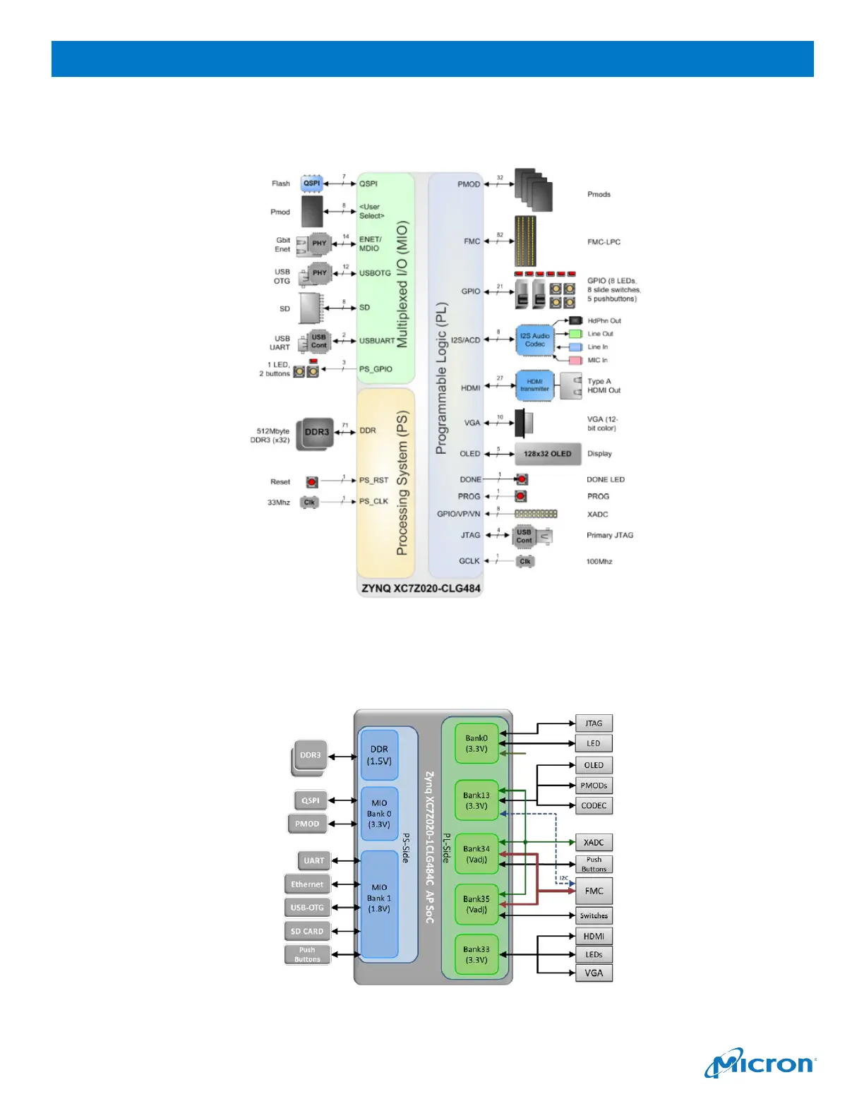 Micron Xccela Flash - Block Diagram; Zynq Bank Pin Assignments