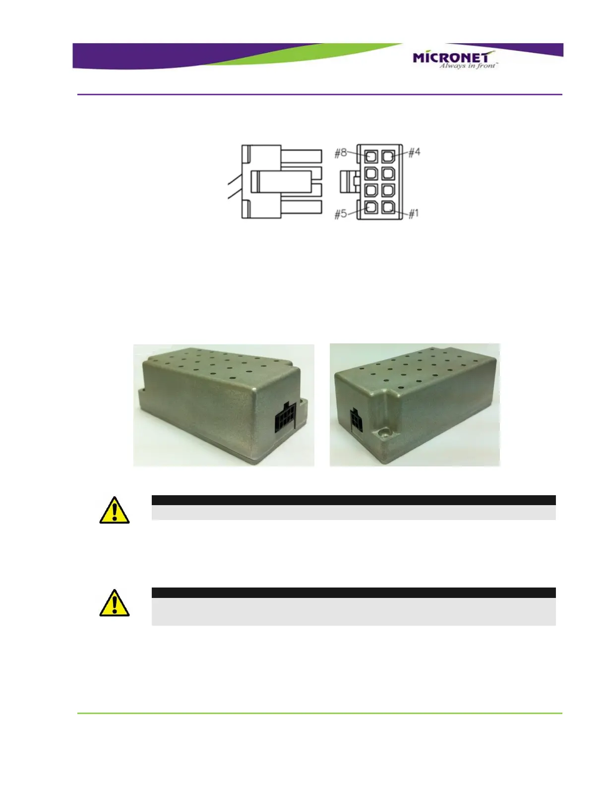 The power adaptor box converts the 12V/24V power signal to 5V DC, which the device's main cable