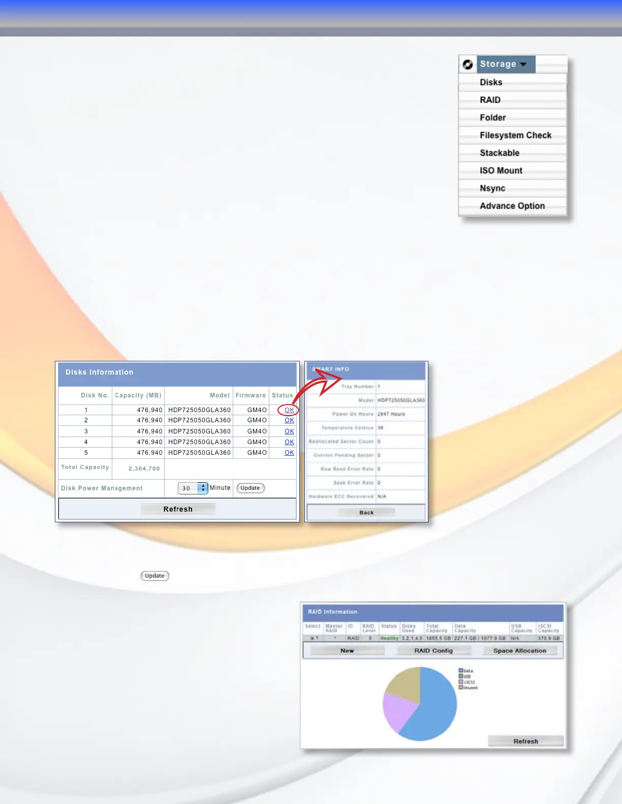 drive mechanism. To view the Disk Info screen, navigate to “Storage” -> “Disks”. The rightmost