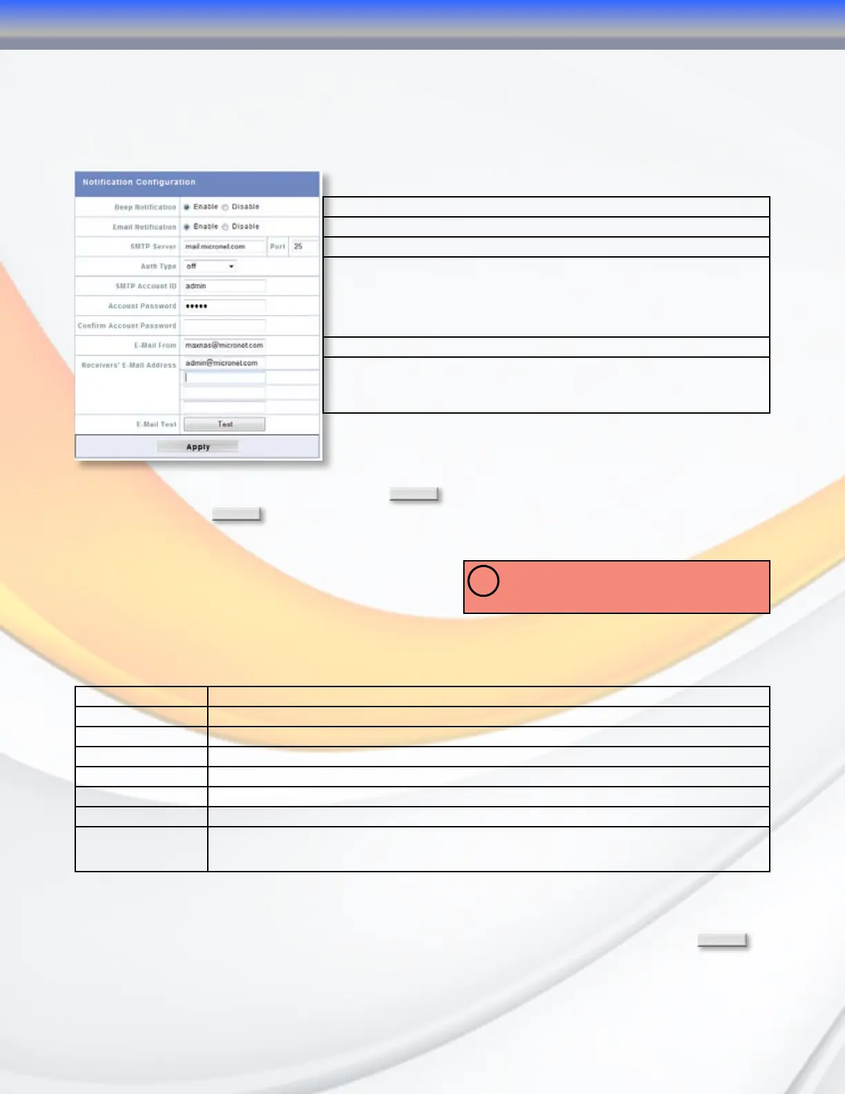 Recipients’ (up to 4) e-mail addresses for notification of system events.