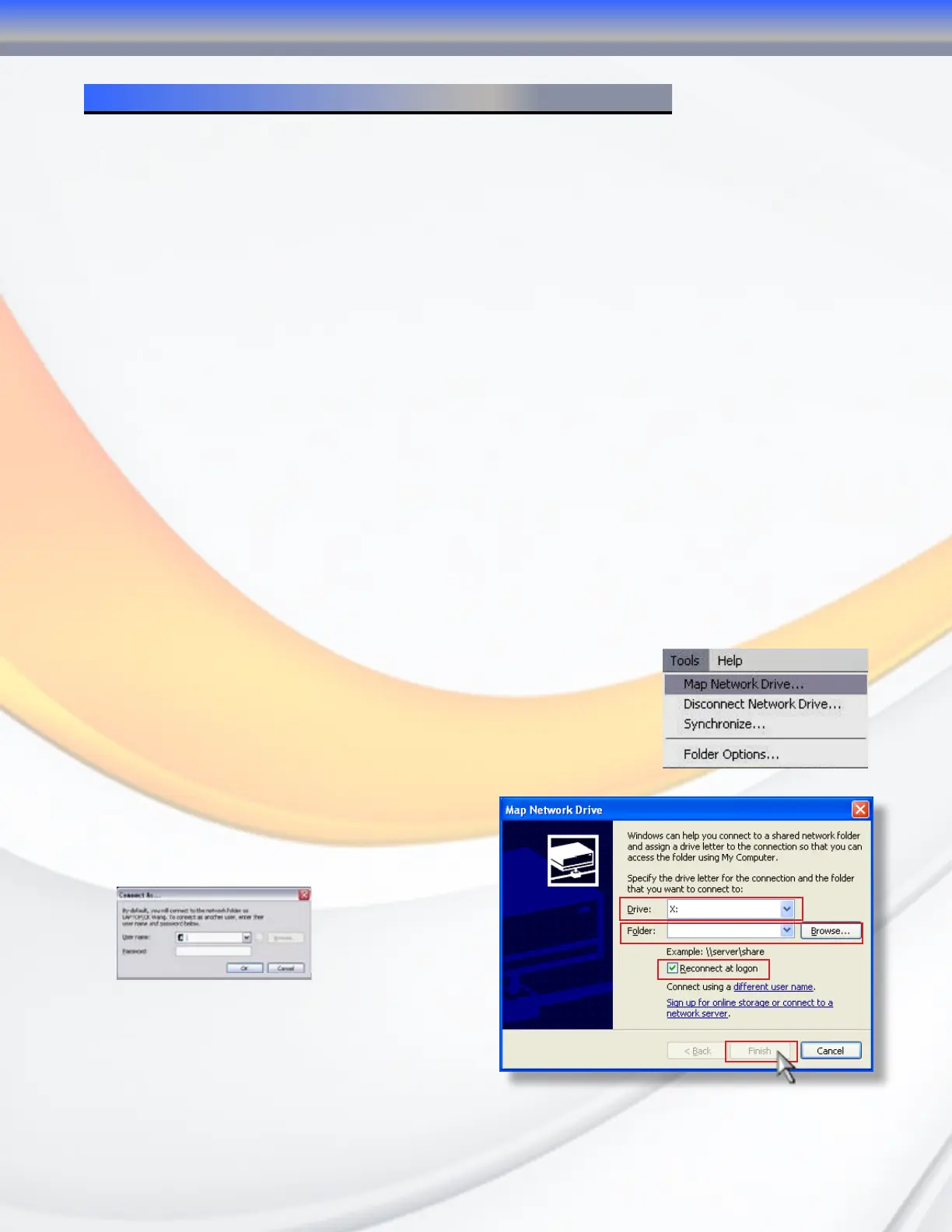 folder in Windows. Connect to the shared network folders on the MaxNAS as follows: