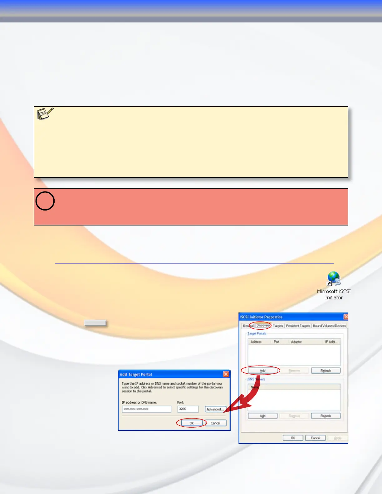 3.1.1 (Windows 2000/XP) Download and install the iSCSI Initiator from the Microsoft iSCSI technology